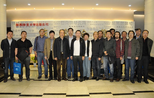3月27日上午,原新城区政府常务副区长、陕西省画廊产业协会会长王建国,西安碑林博物馆副研究员杨兵,中国楹联学会会员赵西斌,西安交通大学杨锁强教授,西安翻译学院图书馆馆长、古籍版本学专家康万武教授,陕西师范大学严学良教授,国家一级美术师张珺教授,厚生隆艺术空间总经理吴孟林等陕西及西安书画界、图书馆界各位专家学者共30余人齐聚陕西师范大学出版社编辑楼,对该社新出版的“缥缃古艳”高仿真古籍善本书画进行品鉴,并就高端美术出版进行深入交流、研讨。