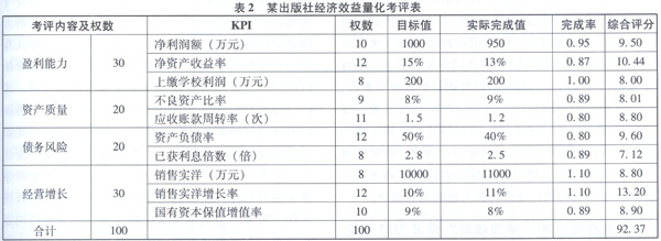 科学地评价出版社整体绩效,可以为学校以出资人的身份行使出版社高级管理人的选择权提供重要依据,可以有效地加强对出版社最高管理层的监管和约束,可以为有效激励出版社高级管理人提供可靠依据,可以为政府有关部门、债权人、职工等利益相关方提供有效的信息支持。整体绩效考评也便于出版社最高管理层掌握企业的整体绩效,以便总结取得的成绩,分析存在的问题,改进以后的工作。