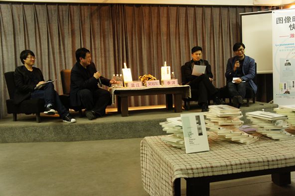 4月25日,南京大学出版社新创学术品牌“当代激进思想家译丛”(《无边的艺术》《图像的命运》《小万神殿》《哲学宣言》)在南京先锋书店举办了一场学术沙龙——“图像时代的快感与政治——激进思想三人谈”。本次活动邀请了南京大学的教授蓝江主持,华东师范大学的吴冠军教授、东北师范大学的李洋教授一同参加。当日,临时加入座谈的华东师范大学姜宇辉博士,也为此次先锋思想的碰撞增色不少。蓝江教授表示,此次活动故意设置为跨学科的嘉宾组合,也没有让他们提前准备任何材料,而是不限主题地畅所欲言,希望现场观众能在这种形式下了解当代激进思想家理念中所蕴含的火花。
