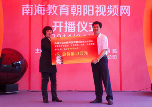 2014年4月25日,由佛山市南海区教育局和中国电信佛山市南海区分公司主办的南海教育朝阳视频网开播仪式在佛山市南海教育发展研究中心广场隆重举行。广东省教育技术中心副主任、广东省电化教育馆副馆长李昶代表广东省教育厅出席了此次仪式并致辞。此外,出席开播仪式的还有广东省教育厅信息化办公室科长、省教育技术中心发展研究部主任林君芬博士,南海区委梁耀斌常委、南海区教育局吴赐成常务副局长等领导,外研社教育服务支持中心总监、基础教育出版分社申蔷社长受邀参加此次开播仪式。申蔷社长代表外研社向南海区教育局捐赠价值15万元整英语图书。