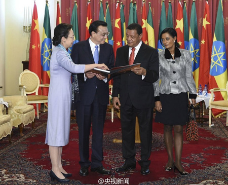 国务院总理李克强当地时间2014年5月6日上午在亚的斯亚贝巴国家宫会见埃塞俄比亚总统穆拉图。这次会见结束后,李克强总理向穆拉图总统赠送介绍北京大学的《走进北大》画册。穆拉图总统年轻时曾在北京大学留学。