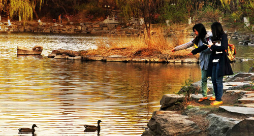 北大的魅力在于人,又不单单在于人。走进北大,每个人都会被这所校园深深吸引。湖光塔影之间,处处可以感受天地之灵气。这里是中国生物多样性最为丰富的园林之一。春天的塘畔青柳,盛夏的绿叶赤荷,秋季的银杏红枫,冬日的青松瑞雪,见证着燕园四季风景的变换。传统建筑的韵味,古典园林的意境,千姿百态的草木,生机灵动的鱼鸟,勾画出北大独特毓秀的画面。在这里,自然因人而更富生命,人因自然而愈发归真。身处燕园,每个人都可能获得这样一种享受——远离浮华与喧嚣,内心充满了宁静致远的淡泊之美。