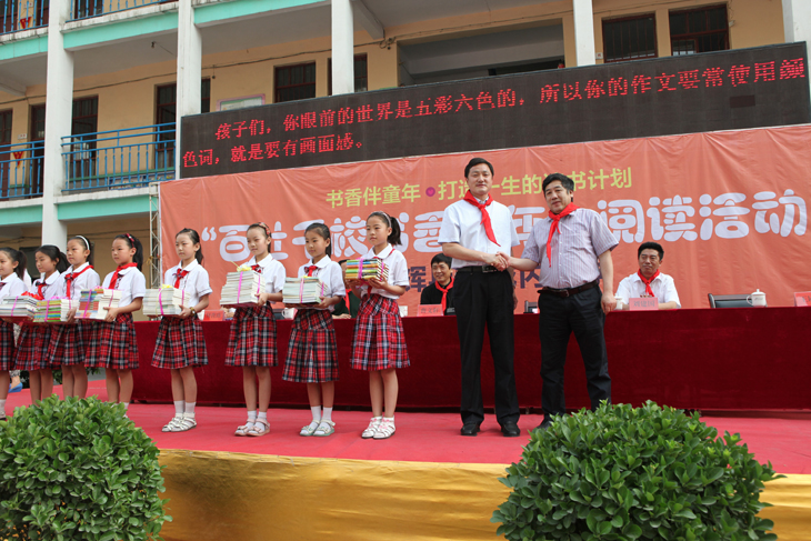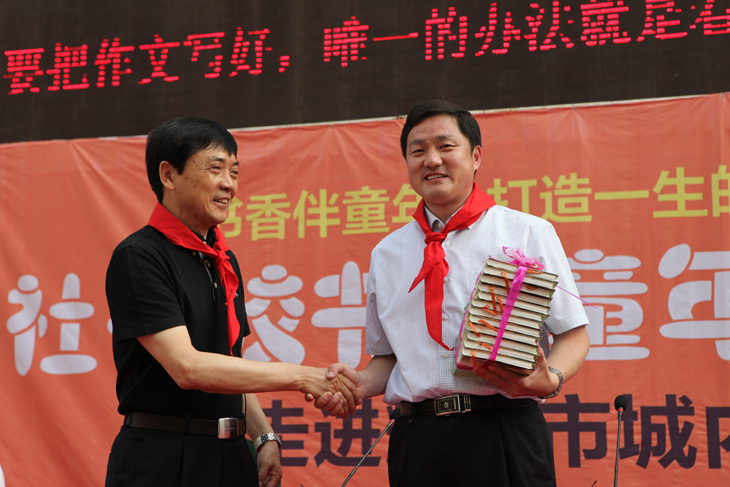 一本好书可以愉悦身心、阳光童年,让孩子感受到直抵心灵的欢乐与愉悦。一本好书可以触动心灵、温暖童心,让孩子收获更多的智慧和见解。 6月12日至13日,由国家新闻广电出版总局推动、北京大学出版社主办的“百社千校书香童年”阅读活动分别走进河南辉县与兰考县,在辉县城内小学和兰考县东街学校举办名为“书香伴童年 打造一生读书计划”的公益捐赠及讲座活动。中国作家协会全国委员会委员、北京市作家协会副主席、北京大学教授、博士生导师曹文轩老师为此次活动的主讲嘉宾,北京大学出版社社长王明舟作为主办方及图书捐赠方出席活动。 据了解,本次活动是北京大学出版社“书香伴童年 打造一生读书计划”系列公益活动的首站举办地,这一系列活动为期四个月,期间北大出版社将携一线作者走进全国五省、十校开展公益讲座,并向每所学校捐赠100本适合青少年阅读的书籍,特别设立“书香童年”快乐读书角。主办方希望借此次公益之行,为正在成长中的少年儿童带去好书,并指导学生如何阅读,旨在少年儿童中形成“爱读书、读好书、善读书”的良好阅读风气。 首站的两场活动都得到了省、市教育宣传部门的大力支持与配合,辉县城内小学活动现场汇集全校学生近3800名,数百名校外教师、学生家长、新闻媒体等也涌入活动现场,总数超过4000人的壮观场面盛况空前,兰考东街学校的现场也集合了在校师生近1500人,虽烈日当头,却热情盈溢。 活动致词中,王明舟社长谈到,阅读是最有益的人生方式,它虽不能改变人生的长度,但可以拓展人生的宽度;虽无法决定人生的起点,却可影响人生的终点。他代表北大出版社向学校捐赠了100本“书香童年”推荐阅读书籍,希望更多孩子可以在书香的熏染中快乐成长,可以在阅读中拓展思维,体验更丰富的人生。 曹文轩老师也在随后以“阅读与写作”为题的讲座活动中强调阅读的重要性,他说:“小孩子要把作文写好,唯一的办法就是看书,不来读哪来写啊?”随后他为孩子们分享了“财富不在远方,就在我们自己的脚下”、“这个世界属于细心的人”、“天堂是一个图书馆”等阅读写作感悟。他表示,如今中国有近3亿少年儿童,而他们的健康成长关系着亿万家庭的幸福,关系着社会的和谐,关系着祖国的未来,更关系着伟大中国梦的最终实现。用更多更美的文学甘泉灌溉孩子们的心田,是当代儿童文学创作者和出版工作者义不容辞的责任。讲座期间曹老师与现场学生频繁互动,千人齐应,场面火爆。 北京大学出版社举办的“书香伴童年Ÿ打造一生读书计划”系列公益活动首站圆满成功,让我们期待活动的进一步推进,使更多的孩子从中受益,让芬芳书香充满美丽童年,让阅读贯穿缤纷人生。来源:北京大学出版社