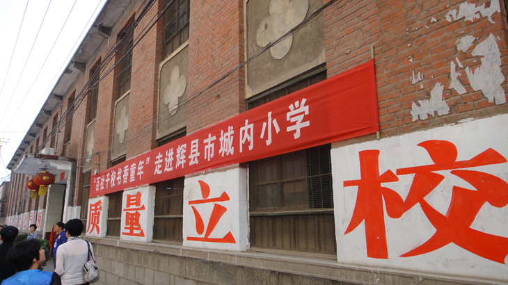 活动现场 活动现场 北京大学出版社社长王明舟致辞 曹文轩老师在兰考县东街学校为学生讲座 曹文轩老师在辉县城内小学为学生讲座 曹文轩老师向小学捐赠签名版《花指头》 曹文轩老师为孩子们签名 北京大学出版社向小学捐赠100本图书 百社千校书香童年 走进辉县城内小学 快乐读书角赠书及书架