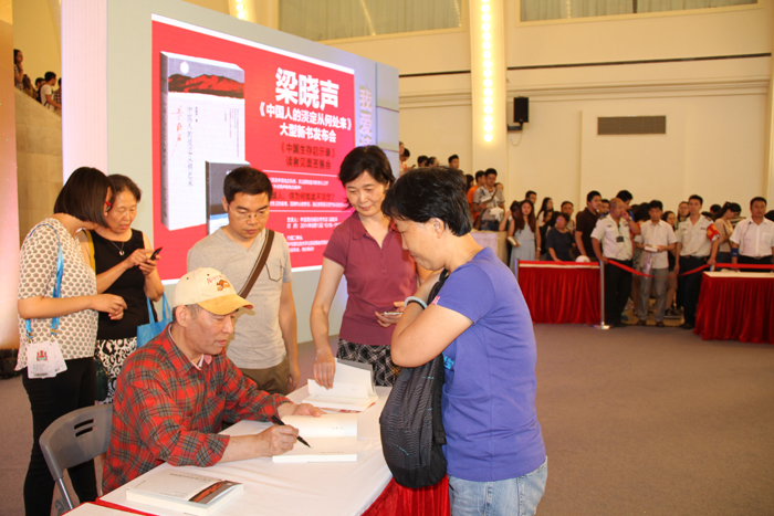 中国当今最具影响力的学者型作家、 “平民代言人”梁晓声作为“书香中国”上海周活动第一天的第一位重量级嘉宾,携新书专题思想随笔精华集、对中国社会的集大成之作——《中国人的淡定从何处来?》来到现场和媒体以及新老读者们进行了交流和签售活动。