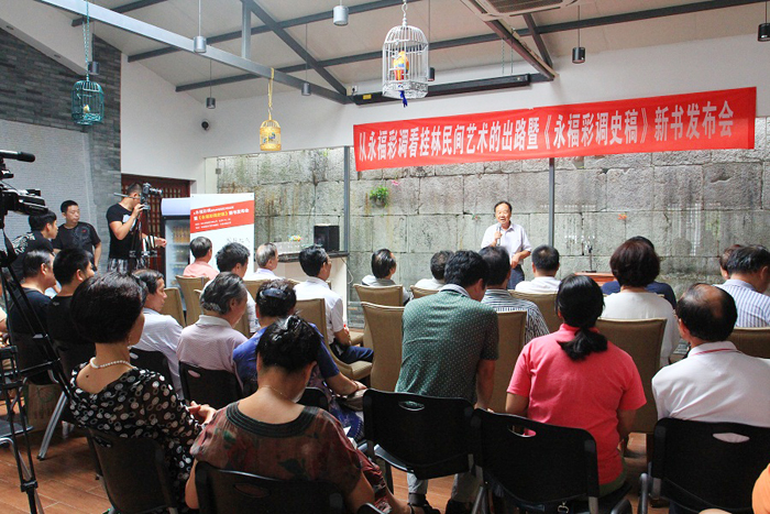 8月22日上午,“从永福彩调看桂林民间艺术的出路”暨《永福彩调史稿》新书发布会在广西师范大学出版社集团有限公司后院“六合小院”隆重举行。永福县政协副主席黄泽治,著名作家黄继树,桂林市文联原主席王志梧,桂林市戏剧家协会副主席、戏剧家、桂林市人大常委会原常委钟仕聪等20多位嘉宾及社会各界人士近百人参加了此次发布会。
