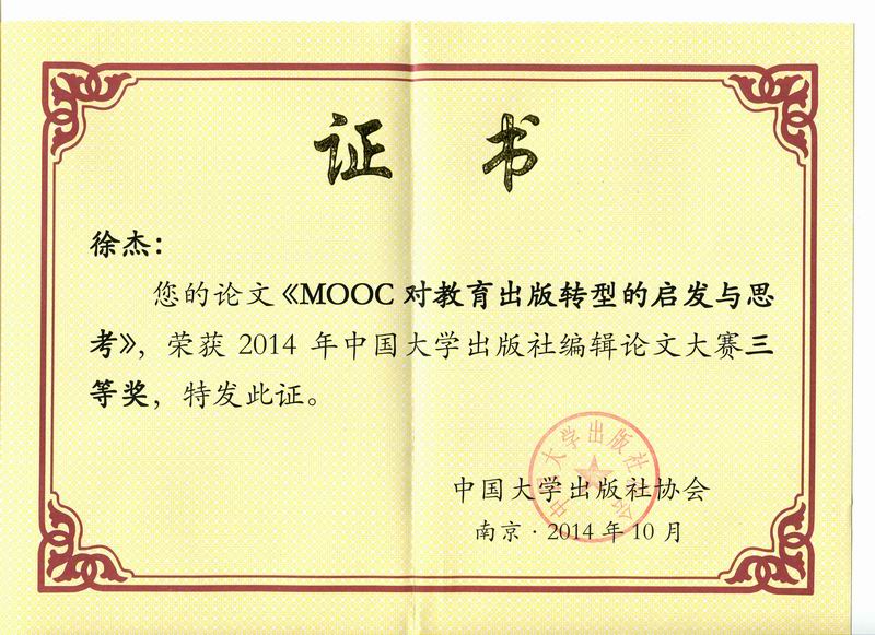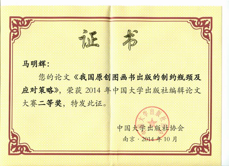 此次论文大赛,教育科学出版社共组织9篇论文参评,获得“优秀组织奖”。经过评比,赵建明撰写的《论幼儿教育特殊性与幼儿读物编辑专业性的联动关系》获得一等奖,马明辉撰写的《我国原创图画书出版的制约瓶颈及应对策略》获得二等奖,徐杰撰写的《MOCC对教育出版转型的启发与思考》获得三等奖。