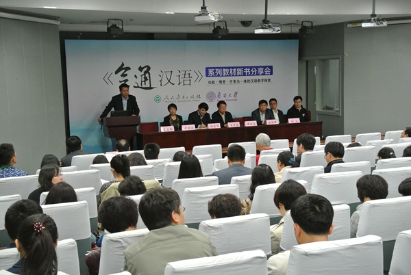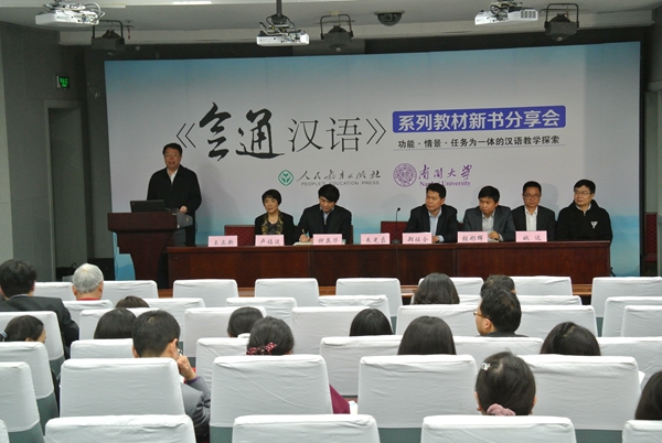 2015年5月10日,由人民教育出版社出版、南开大学汉语言文化学院编写的《会通汉语》系列教材新书分享会在南开大学举行。来自南开大学、天津大学、天津师范大学、天津外国语大学等10余所高校的对外汉语教师100余人与会,认真研讨“功能·情景·任务”三位一体的汉语教学模式,共同分享《会通汉语》系列教材出版这一国际汉语教育领域的盛事。分享会由南开大学汉语言文化学院院长王立新教授主持,南开大学朱光磊副校长、人民教育出版社郑旺全副总编辑和国家汉办教材处张彤辉处长分别致辞,对《会通汉语》的出版表示祝贺,对国际汉语教材研发领域中这一新的探索寄予了厚望。