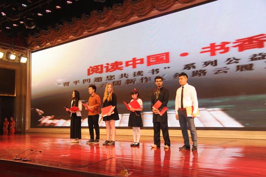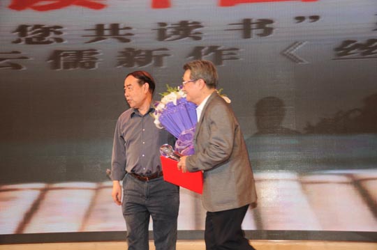 分享会在主持人孙维精彩的开场白中缓缓拉开帷幕,蒋慧莉致欢迎词,陈建有、张堆民、李中航分别上台发表讲话,对肖云儒情系丝路、传播丝路文化的执着与情怀表示钦佩,之后贾平凹为肖云儒颁发“读书大使”聘书及奖杯,现场数百人见证了这一幸福时刻。活动现场,十余位文化艺术界嘉宾参与了肖云儒的新作《丝路云履》的揭幕仪式,肖云儒从丝路文化与中西方文化的角度对“丝绸之路经济带建设”进行了文化阐释,体现了他博望的眼光与深刻的丝路人文思想。为了体现欧亚各国共同再建和平幸福的“丝绸之路”的美好愿望,丝路沿线五个国家的学生分别朗诵了《丝路云履》中的精彩片段,唤起了人们千年的记忆。
