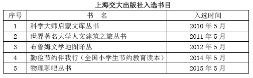 上海交通大学出版社已是第五次入选向全国青少年推荐百种优秀图书。(详情见附件)