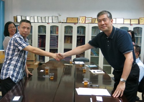 6月9日上午,《中国家庭医生》杂志社社长陈跃龙及高管人员莅临中山大学出版社,受到了徐劲社长及高管人员的热烈欢迎。双方就人员业务培训、选题策划、营销等问题进行了深入交流,并签订共建中山大学医科编辑室的合作协议。