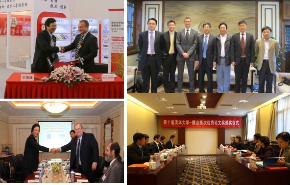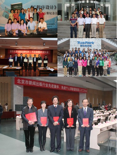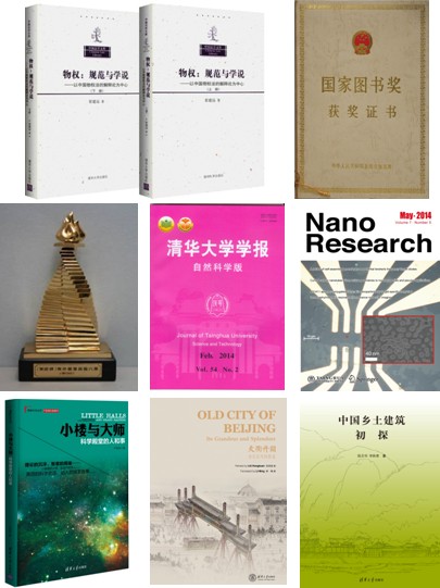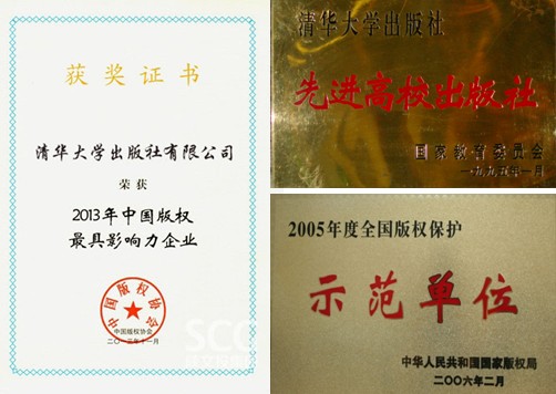 清华大学出版社实施“品牌化”战略,始终把社会效益放在首位,狠抓图书质量,精雕细琢,内外兼修,坚持在多个出版领域锻造精品。早在1987年,《科学认识论与方法论》即获得首届中国图书奖;此后,《颐和园》《国粹京剧》获得“莫比斯”多媒体国际大奖,《家庭电脑十用》获首届国家电子出版物奖,《新时代交互英语》获首届中华优秀出版物奖。仅2014年,我社就有四种图书、期刊获得中国出版政府奖:(展示图书与奖牌)《物权:规范与学说》获第三届中国出版政府奖“图书奖”;《中国乡土建筑初探》获第三届中国出版政府奖“图书奖”提名奖;《纳米研究(英文版)》获第三届中国出版政府奖“期刊奖”;《清华大学学报(自然科学版)》获第三届中国出版政府奖“期刊奖”提名奖;《小楼与大师——科学殿堂的人和事》荣获“2014中国好书”榜;《天衢丹阙》荣获“中国最美的书”等。35年来,我社有500多种图书、期刊荣获国家级及省部级奖项,并连续多年获得北京印刷质量协会印刷分会颁发的出版物优质奖。