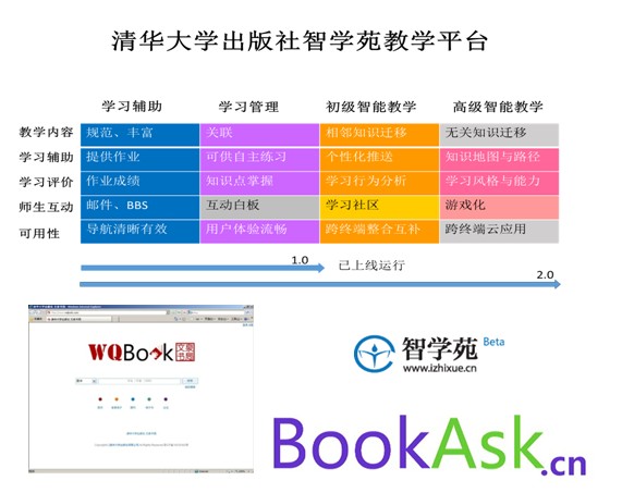 随着互联网、大数据、数字化出版的迅猛发展,清华大学出版社正在进行出版数字化的转型升级。数字教学平台“智学苑”是清华大学出版社向教育服务提供商转型的最新成果,平台基于MOOC + Classroom模式,将教材及其他各类教学资源进行数字化,同时与课堂教学紧密结合,开发个性化的课程管理模块,实现教学资源的智能化和最大化共享。数字出版门户网站文泉书局在线提供我社及近20家合作出版社的数字图书、数字期刊,已发展成涵盖全国1700余所高校,40000多名会员教师的宣传推广网络平台。“书问搜索 www.bookask.cn”——出版物的全文搜索引擎,则为用户提供书页级的内容搜索服务,并以此为核心功能,为出版机构提供指定网页链接服务。