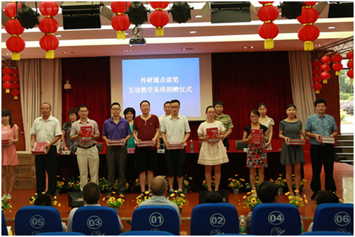 本次捐赠的外研通互动教学系统为2015年最新款产品,作为外研社基础英语教育数字化解决方案拳头产品,在今年4月青岛举办的“全国中小学教育信息化应用展览上”首亮相并获得了业界高度评价。它突出体现了中小学外语学习的实践性训练,能帮助学生营造地道外语环境,增加学生学习外语的兴趣,帮助英语教师提升教学水平,提高课堂教学效率。