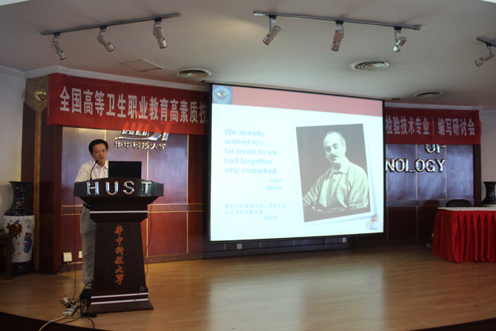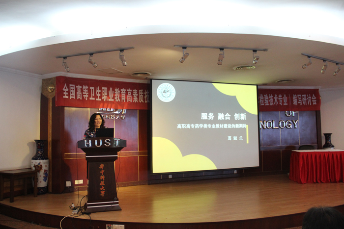 会议召开当天,会场内高朋满座,华中科技大学出版社医学分公司经理居颖主持了这场会议,副社长王连弟首先致辞,对各位到会专家、老师的到来表示热烈欢迎,并且对华中科技大学出版社尤其是医学分公司做了简要介绍,对大家共同做好本套教材的编写工作充满了信心与期待。会上,全国卫生职业教育行指委委员兼医学技术类专指委主任委员、金华职业技术学院党委副书记胡野教授就“全面领会‘五个对接’系统推进教学创新”的主题作了精彩报告,全国高职高专药品类专业教育教材建设指导委员会委员、山东医学高等专科学校副校长葛淑兰教授则在“服务、融合、创新”方面对高职高专药学类教材的建设提出了新期待。