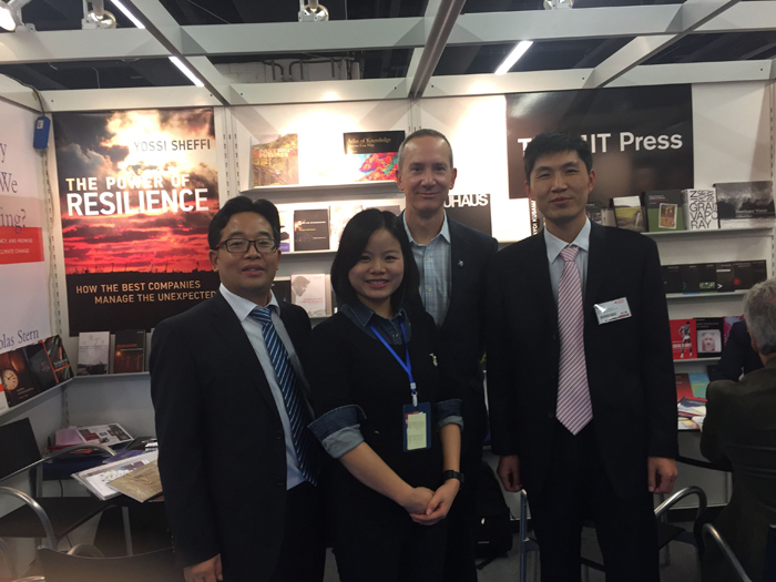 10月14日~18日,华中科技大学出版社一行8人高效有序、积极参加了2015法兰克福书展,这也是公司连续第8年独立参展,见证了公司海外影响的不断扩大,以及公司图书“走出去”业绩的不断成长。此次书展,现采图书收入码洋30余万元;深入有效的版权及出口业务洽谈20余场,达成出版意向图书50余种;与来自全球各地的合作伙伴在版权贸易、实体出口、合作出版、图书封面设计、境外资源开发等方面进行了深度交流和探讨,并取得了一系列成果。