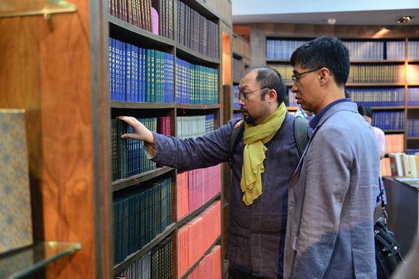 高印焕、高明澈教授对我社珍稀文献图书很感兴趣