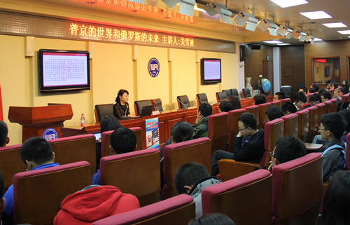 10月22日,“普京的世界与俄罗斯的未来”读书会在国际关系学院举行。主讲人中国人民大学俄罗斯研究中心主任、中国人民大学经济学院党委书记关雪凌教授,用深入浅出的语言阐释了几个问题:俄罗斯的“资源民族主义”动了谁的奶酪?普京是否终结了曾经叱咤风云的俄罗斯寡头?双头鹰飞向何方?现场听众提问踊跃,气氛热烈。此次读书会还得到了北京团市委的大力支持,并与经济观察报书评版和中国青年网开展了战略合作,通过整合多方资源实现了知识的共享与活动效果的共赢。