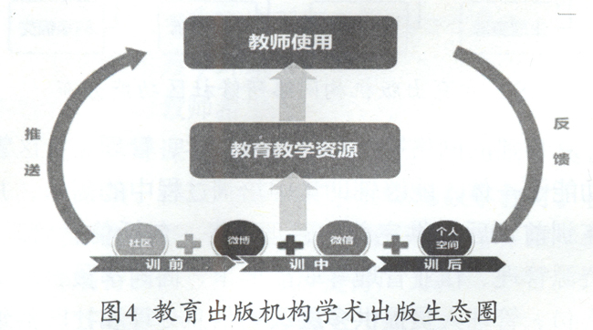 这一国家战略如何与我国广大中小学教师职业发展工作相结合是我们出版人的使命与责任,也是教育出版机构转型发展的重要契机。以教师发展为核心的新型学术出版生态圈的建立,将不仅为各级教育行政部门开展教师培养提供有力的技术和资源保障,也为教育出版社学术出版提供一条新型发展之路。教育出版机构可以搭建自身的教师资源平台,常态化地提供线上资源推送,使用反馈和开展学习社区交流与专业化指导。在此过程中有目的地形成定制化的资源生成,从而将自身多年积累下的客户资源、内容资源和需求有效地整合在新形势下的产业链条上,并通过跨地区的共建共享实现互联网环境下的多种商业模式,让“互联网+"能够可持续地服务于广大教师的专业成长与终身发展。