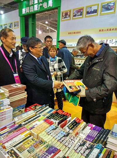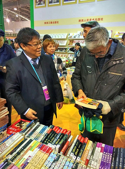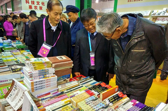 在陕西省新闻出版广电局的统一组织下,陕西师范大学出版社与省内17家出版单位联合参展本届农高会,共带去3000余种精品图书,其中陕西师范大学出版社参展图书380余种,以社科文化、中小学教辅、健康生活、农业科技等贴近农业生产和农民生活需要为主。陕西省版权局副局长沙庆超还专门来到陕西师范大学出版社展位前,给过往的读者及农民朋友介绍推荐陕西师大出版社的图书。农民朋友表示能在农高会上买到需要的图书很高兴,还能与局长聊天,希望同类的送书下乡、文化惠民活动多多益善。