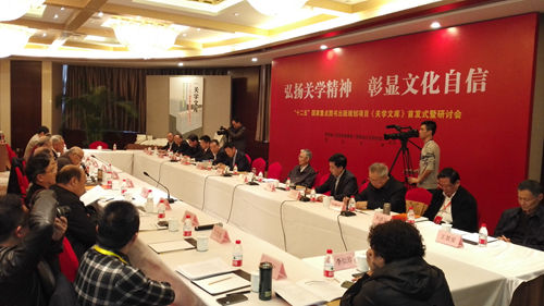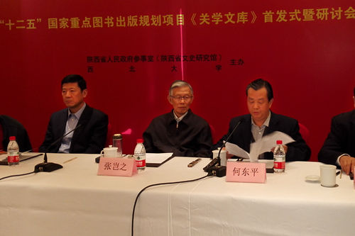 11月15日,由陕西省人民政府参事室(陕西省文史研究馆)、西北大学联合举办的 “十二五”国家重点图书出版规划项目《关学文库》首发式暨研讨会在北京召开。这次会议以“弘扬关学精神、彰显文化自信”为主题。中共陕西省委书记赵正永致信祝贺,国务院副秘书长江泽林、国家新闻出版广电总局副局长阎晓宏、《光明日报》总编辑何东平、文化部原副部长郑欣淼出席并讲话;陕西省政府秘书长陈国强宣读贺信并致辞,著名史学家、文库编委会主任张岂之作主旨演讲,文库组委会、编委会执行副主任徐晔,文库编委会副主任赵馥洁,总主编刘学智、方光华,文库出品人马来作专题发言。著名学者张立文、陈鼓应、陈祖武、葛荣晋、陈来、林安梧(台湾)、杨国荣、李存山、舒大刚、廖可斌和作者代表林乐昌、王美凤等近百人参加会议,并进行学术研讨。会议由陕西省人民政府参事室(陕西省文史研究馆)党组书记、主任张祖培和西北大学党委书记王亚杰主持。