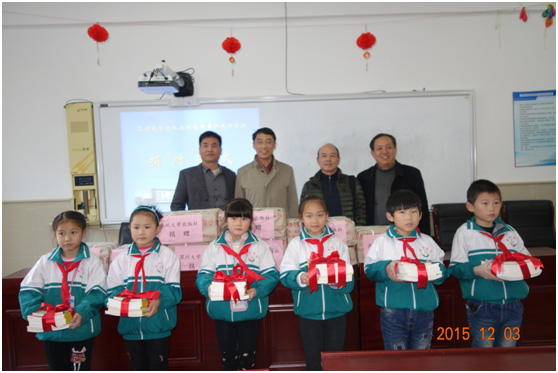 2015年12月3日,由苏州大学出版社党支部、工会组织的爱心捐赠活动在苏州吴中区黄垆民办学校举行,苏大社社长张建初,党支部书记、副总编辑朱坤泉,黄垆民办学校董事长黄沛忠、校长王明以及受捐助的学生代表等参加了简短而热烈的捐赠仪式。