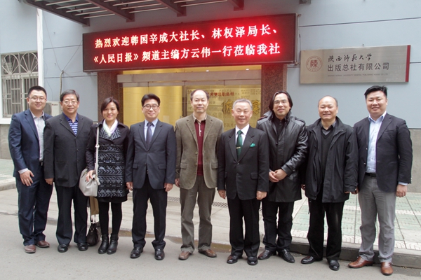 3月22日,韩国东文选出版社辛成大社长在亚洲时代林权泽局长陪同下来到陕西师范大学出版社访问交流,就陕西师范大学出版社图书《在西北局的日子里》向韩国输出版权事宜达成协议,《在西北局的日子里》韩文版将由韩国东文选出版社翻译出版。《人民日报》市场频道主编方云伟随行采访。总社董事长兼社长刘东风、人文分社社长冯晓立、策划编辑邓微陪同接待,《在西北局的日子里》作者石杰参加座谈。