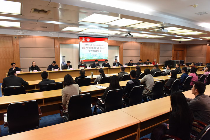 3月25日上午,西南科技大学与外研社共建“中国优秀传统文化外译中心”签字暨揭牌仪式在办公楼302会议室举行。西南科技大学校长陈永灿,外研社总编辑徐建中,外研社西南信息中心及学校党办校办、研究生院、社科处、发展规划处、国合处、外国语学院相关负责人和师生代表参加仪式。仪式由西南科技大学副校长陈朝先主持。