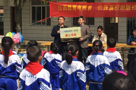3月25日,江西高校出版社与江西教育电视台联合开展的“爱心书屋”公益活动首站走进南昌县黄马乡郭埠中心小学,给孩子们送去了价值16000多元的爱心书籍和物资。