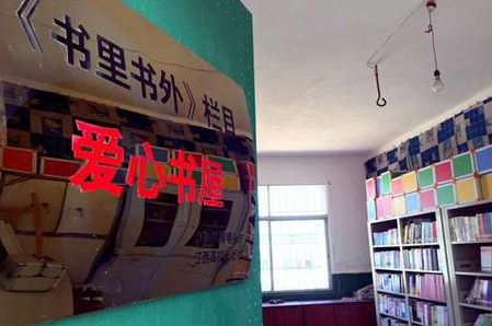 “爱心书屋”是江西教育电视台与江西高校出版社、江西省编辑学会联合创办的《书里书外》栏目推出的一项公益活动,呼吁社会各界爱心人士捐赠闲置书籍,希望汇聚企业单位、社会团体和广大爱心人士的力量,为贫困山村学校的孩子们募捐好书。