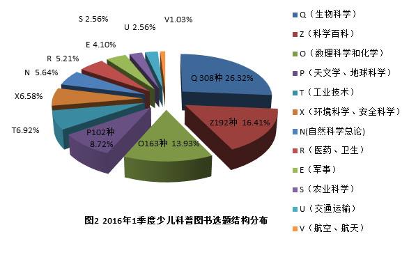 从选题结构分布来看,生物科学在300种以上,占比26.32%;科学百科、数理科学和化学、天文学地球科学均在100种以上;其余类别品种均在百种以下(见图2)。