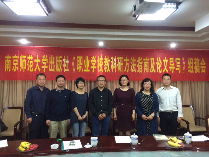 2009年,南京师范大学出版社作者方健华曾经编写了《中小学教科研方法指南及论文导写》一书,在江苏省内外销售,取得了良好的社会效益和经济效益。在此基础上,2016年5月4日上午,《职业学校教科研方法指南及论文导写》组稿会在南京师范大学南山专家楼二楼会议室召开,江苏省教科院职业教育与终生教育研究所副所长方健华研究员、江苏省中职教师培训中心曹鸿骅主任、南京中华中等专业学校教学科研处陈莉主任、太仓中等专业学校教学管理处殷利处长、昆山第二高等职业学校张宏博士以及南京师范大学出版社基教教辅分社总编辑姜爱萍编审、策划编辑张岳全参加了组稿会。会上,各位专家对书名、编写体例、编写方案、分工等进行了充分讨论。专家团队经过充分讨论,达成了一致,目标是把本书打造成一线教师亟需的,具有职业教育特色,较强的指导性和实践性的著作。