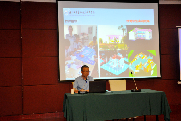 湖北城市建设职业技术学院科研处及校企合作处处长王佑华老师首先介绍了基于建筑业新常态与“互联网+”背景下的教育教学改革。王佑华老师从大环境入手举出了很多国家最新最前沿关于教学改革的条文规定,然后结合自己的经验与调研,给出了众多的符合大趋势且基于互联网的解决方案,如微课、慕课等。