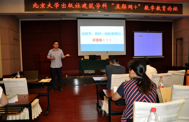 北京大学出版社第六事业部副主任、数字出版负责人赖青介绍了互联网技术条件下资源内涵的重构与未来课堂。他讲到建筑学科智慧实训室建设模式、从课堂现场到移动端的传播与互动教学、数字教育在学科建设中的定位、资源的建设与延续、移动教学与云平台以及智慧实训室与VR实训室等内容,对教学信息化做了很好的展望。