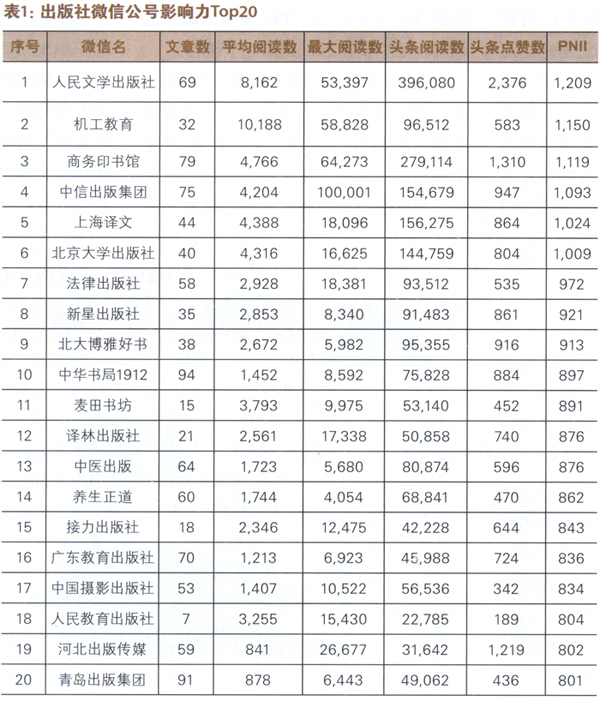 本文统计了4月16日至5月15日期间出版社及图书公司微信公号的表现情况。总得来看,出版社微信公号PNII影响力指数平均值为937,较上月略有下降。出版机构的PNII指数连续三个月出现下降,如何开拓更具传播效果的宣传推广渠道,值得业界关注。