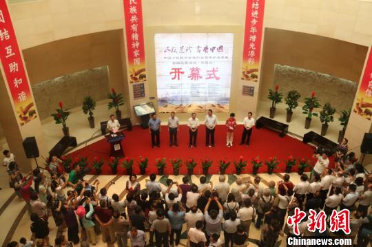 图为“民族遗珍 书香中国——中国少数民族古籍珍品暨保护成果展”全国巡展活动(新疆站)开幕现场。 孙亭文 摄