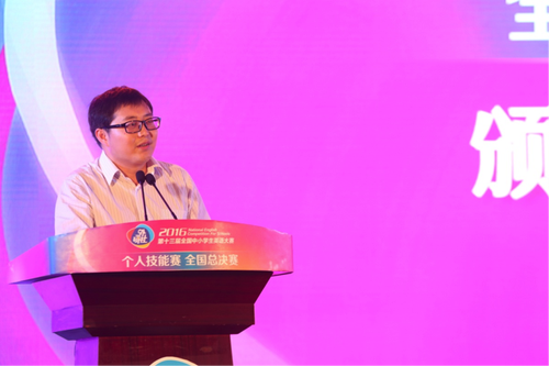 随后,教育部基础教育二司教育装备处处长乔玉全先生致辞,他提到“外研社杯”全国中小学生英语大赛始终站在国家教育改革的前沿,不断创新、锐意进取,大赛的变革一定程度上代表了我国英语教育改革的发展历程。在“外研社杯”大赛的平台上曾经走出许多优秀的选手,他们不仅有出色的语言能力,更成长为社会发展需要的创新型人才。通过大赛的历练,使他们具备了更广阔的国际视野,坚定了追求理想的信念,奠定了人生路上一块稳健的基石。