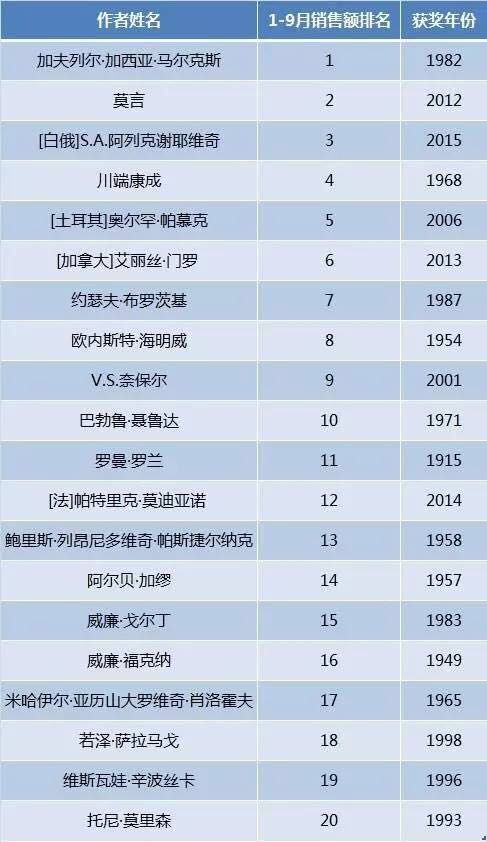 近日,京东和亚马逊都做了诺贝尔得主图书销售的排行榜,当当做了近10年获奖者销售排行榜、自1901年以来获奖者销售排行榜和博彩公司获奖热门作家销售排行榜。由此可以看出诺奖图书的销售趋势。