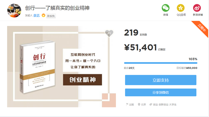 截至今日,《创行》一书已完成众筹目标