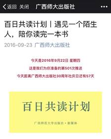 广西师范大学出版社9月23日推出的“百日共读”活动第一期,阅读量达12300多。