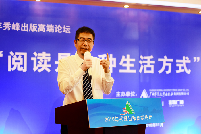 广西师范大学出版社集团总裁姜革文主持沙龙(李显杨 摄)