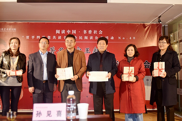 活动最后,总社、山东人民出版社向贾平凹文化艺术研究院、陕西省图书馆、西安市图书馆公益赠送王新民先生《贾平凹纪事》系列作品,传播文化,传递爱心。