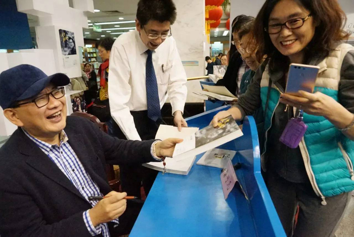 对谈结束后,曹可凡为热情的读者们签名。等待签名的队伍,排成了长龙。