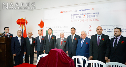 在黎巴嫩期间,中国人民大学代表团还应邀出席了由中国人民对外友好协会和黎巴嫩法兰萨银行等机构共同主办的“一带一路在黎巴嫩:北京至贝鲁特”系列活动开幕式。中国人民对外友好协会会长李小林、中国驻黎巴嫩大使王克俭、黎巴嫩法兰萨银行董事长阿德南·卡萨等中黎各界人士200多人出席开幕活动。活动为期半个月,由“中华优秀图书展览暨《百年牵手——中国和黎巴嫩的故事》新书发布会”、“中国美食节”、“中国-阿拉伯银行业对话”等组成,旨在加强中国同黎巴嫩在文化、旅游、经贸等领域的交流,共同助力“一带一路”建设。