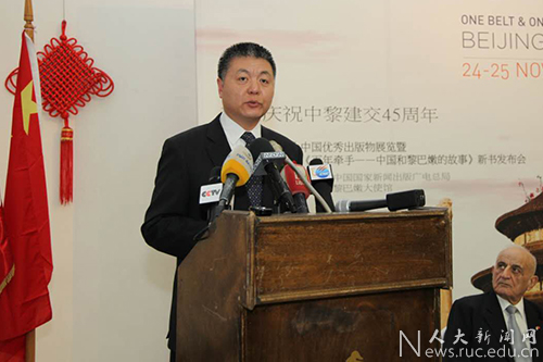 11月22-26日,中国人民大学出版社在黎巴嫩和北京举办中华优秀出版物展览、《百年牵手——中国和黎巴嫩的故事》中阿文版新书发布会、向黎巴嫩大学赠送中国主题图书等系列活动,以纪念中黎建交四十五周年,相关活动也是中国人民对外友好协会同黎巴嫩法兰萨银行在贝鲁特共同主办的“‘一带一路’在黎巴嫩:北京至贝鲁特”系列活动的重要组成部分。系列活动受到了中黎两国媒体的广泛关注。