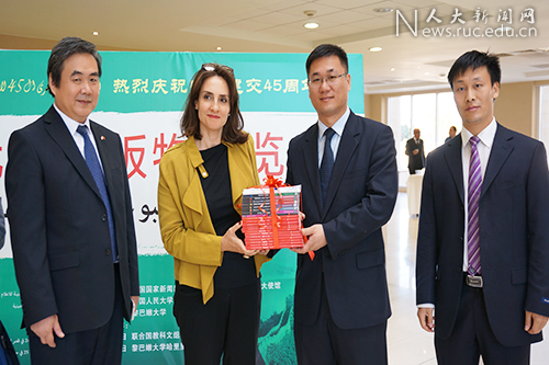 捐赠仪式后,黎巴嫩大学国际部主任娜达代表正在国外出差的福阿德校长会见了中国人民大学出版社代表团。双方就两校在学术合作、翻译出版和师生互访等方面的合作交换了意见。