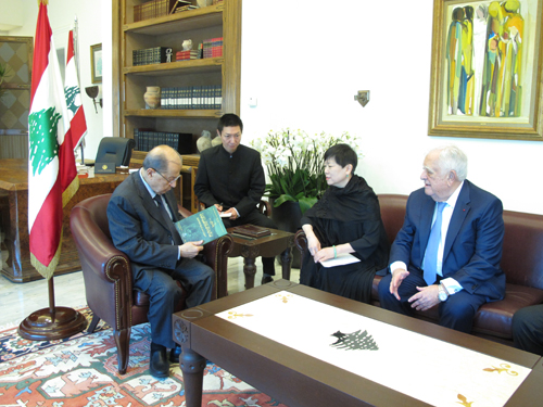 11月26日,在王克俭大使和阿德南•卡萨董事长的陪同下,李小林会长把《百年牵手》作为记述中黎交往历史和友好人士的重要成果,赠送给黎巴嫩新任总统米歇尔•奥恩。
