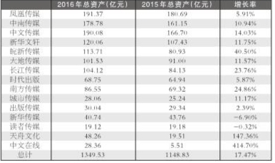 表1 2016年前三季度上市书企总资产增长情况