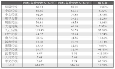 2016年,南方传媒在沪市主板上市,新华文轩回归A股,中国科技出版传媒股份有限公司IPO获得证监会主板发行审核委员会批准,当当网正在筹划回归A股,国内出版发行企业的上市热情依然高涨。加上之前已经上市的凤凰传媒、中南传媒、中文传媒、时代出版、大地传媒、长江传媒、出版传媒、新华传媒、皖新传媒、天舟文化、中文在线、城市传媒、读者传媒,在沪深两地上市的出版类企业已达到15家。