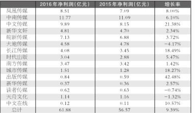 表4 2016年前三季度上市书企净利润增长情况